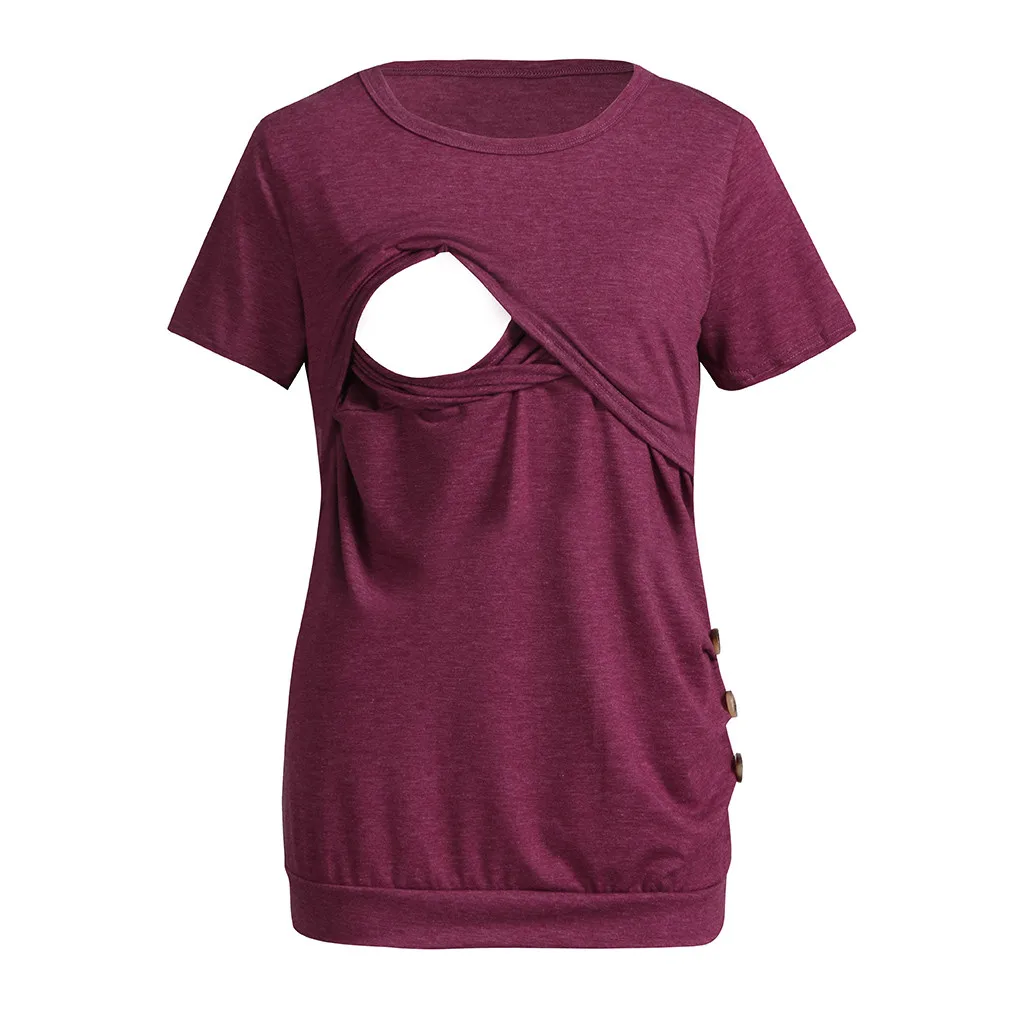 Женский однотонный топ с коротким рукавом и принтом для кормления грудью, футболка