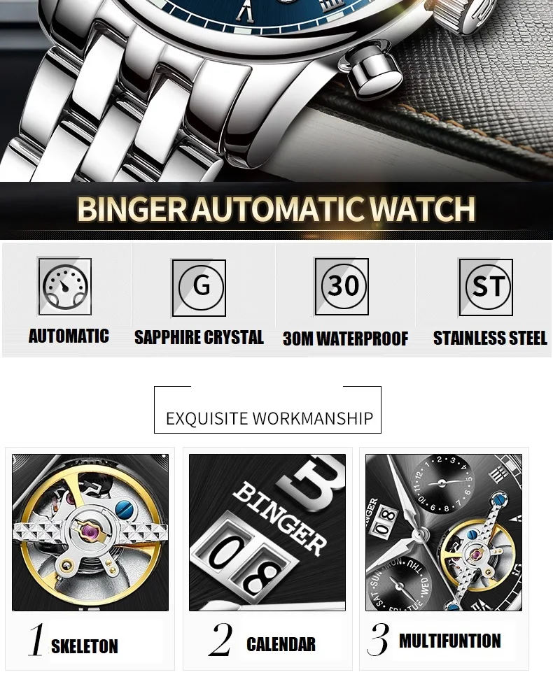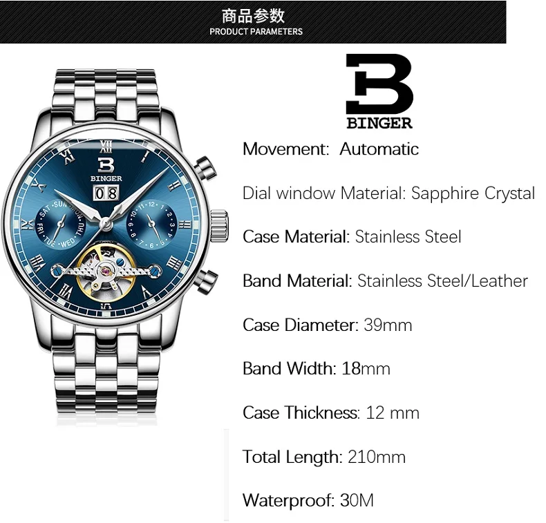Тип ремешка: нержавеющая сталь 316L или натуральная коровья кожа