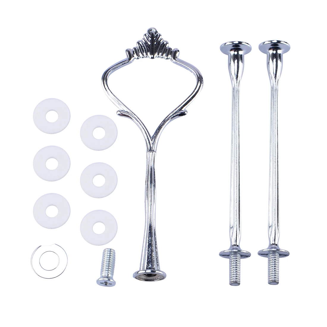 Новинка, хит, 1 шт., корона, 3-уровневая подставка для фруктовых тортов, Центральная ручка, фурнитура, стержень, полка (тарелки не входят в комплект)-серебро