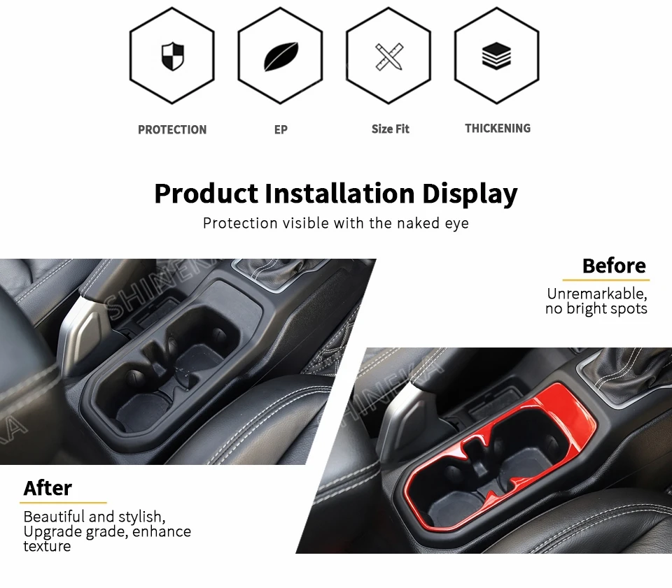 SHINEKA Автомобильный держатель для передней чашки для напитков Декоративные наклейки для Jeep Gladiator JT для Jeep Wrangler JL 2018-2021 аксессуары