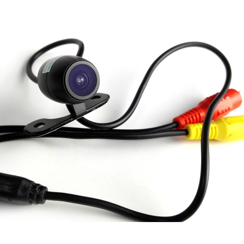 Датчик изображения: цветная CMOS ТВ система: NTSC/PAL Вид: Вид спереди/вид сзади Угол Линзы: 140 градусов Диагональ Горизонтальное разрешение: 600 ТВ-линий Разрешение: PAL 720(H)× 576(V) пикселей, NTSC 720x480 (Задняя) Функция зеркала, нет линии парковки Автоматический баланс белого Минимальное освещение: 0,1-0.5Lux/F = 1,2 Видео выход: RCA разъем, 1,0 V р-р, 75ohm Потребляемая мощность: 60 мА Питание: DC9V до 12V Посылка включает: 1 мини-камера