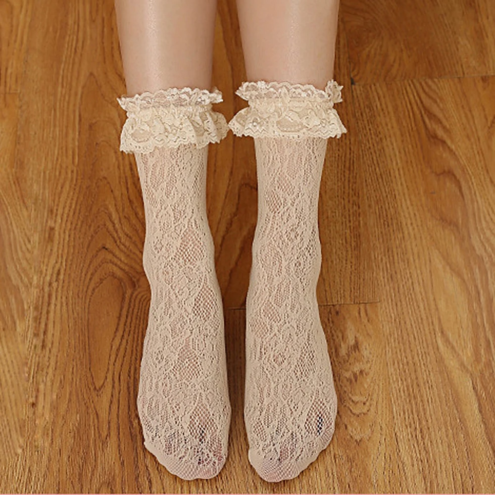 Женские белые и черные прозрачные кружевные носки с цветочным принтом