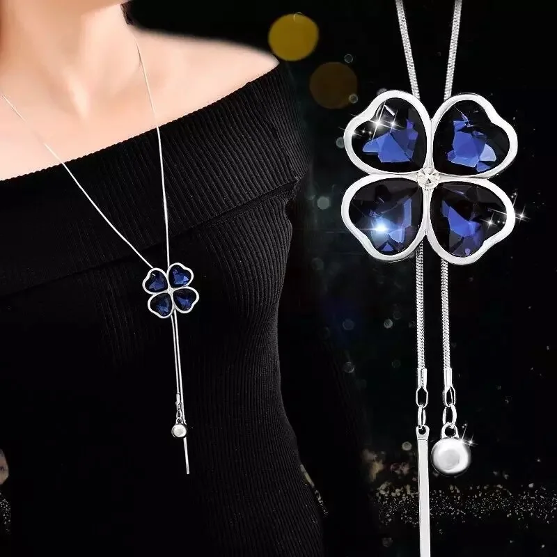LWMMD винтажные ожерелья, ювелирные изделия из кристаллов, ожерелье с листьями клевера, подвеска, длинный свитер, ожерелье для женщин, ожерелье на заказ