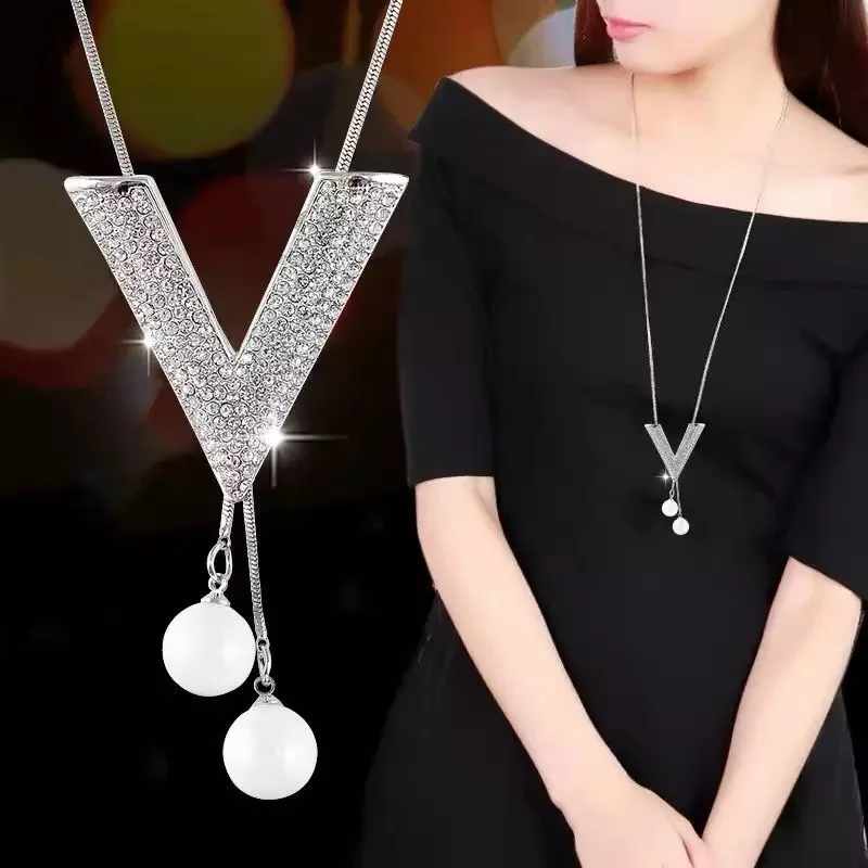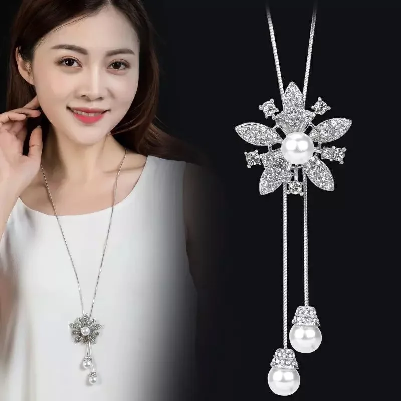 Модное ожерелье с кристаллами, подвески для снега, женское ожерелье с подвеской в виде подсолнуха, подвеска с жемчугом, длинное ожерелье с цепочкой для свитера