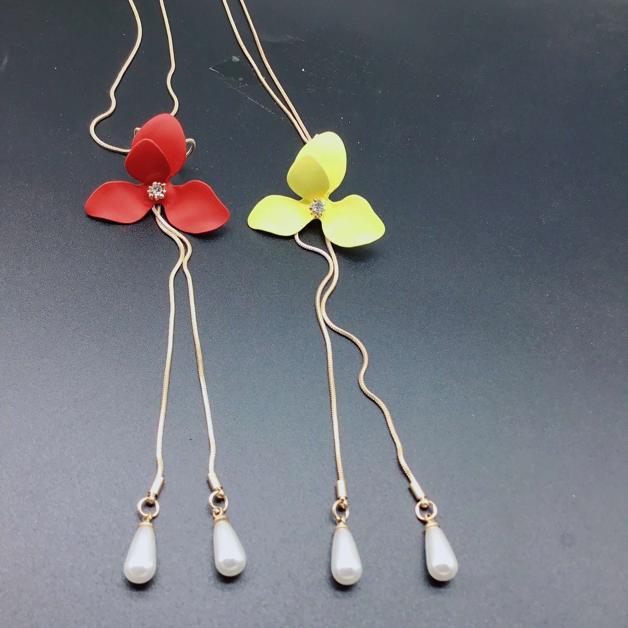 Сезон осень-зима; Модные женские окружающую среду направляющие серьги красный цветок розы Имитация Жемчуга Длинные ожерелья массивные Ожерелья Цепочка на свитер