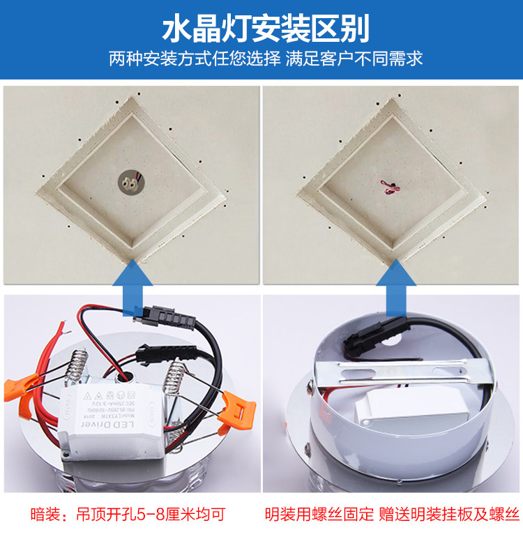 Вниз светильник SMD 3 Вт 5 Вт светодиодный вниз светильник с украшением в виде кристаллов лампа Потолочный Точечный светильник с Светодиодный драйвер AC110V 220V внутренней отделки Наименование товара: светодиодный светильник Цвет излучения: белый/теплый белый/RGB/белый и теплый белый/теплый белый и RGB Цветовая температура: 6000-6500K (белый) ;3000-3200K (теплый белый) Светодиодный s: светодиодный чип Вход напряжение: AC85-265V 50/60Hz Выходная мощность: 3 Вт/5 Вт Люмен: 90 лм/Вт Рабочая температура: от-20 до 60 градусов Размеры: 10 см * 4 см Светодиодная лента: smd 5730 Длительный срок службы:> 50000 часов Сертификация: CE & RoH Посылка: 1 шт для светодиодного потолочного светильника