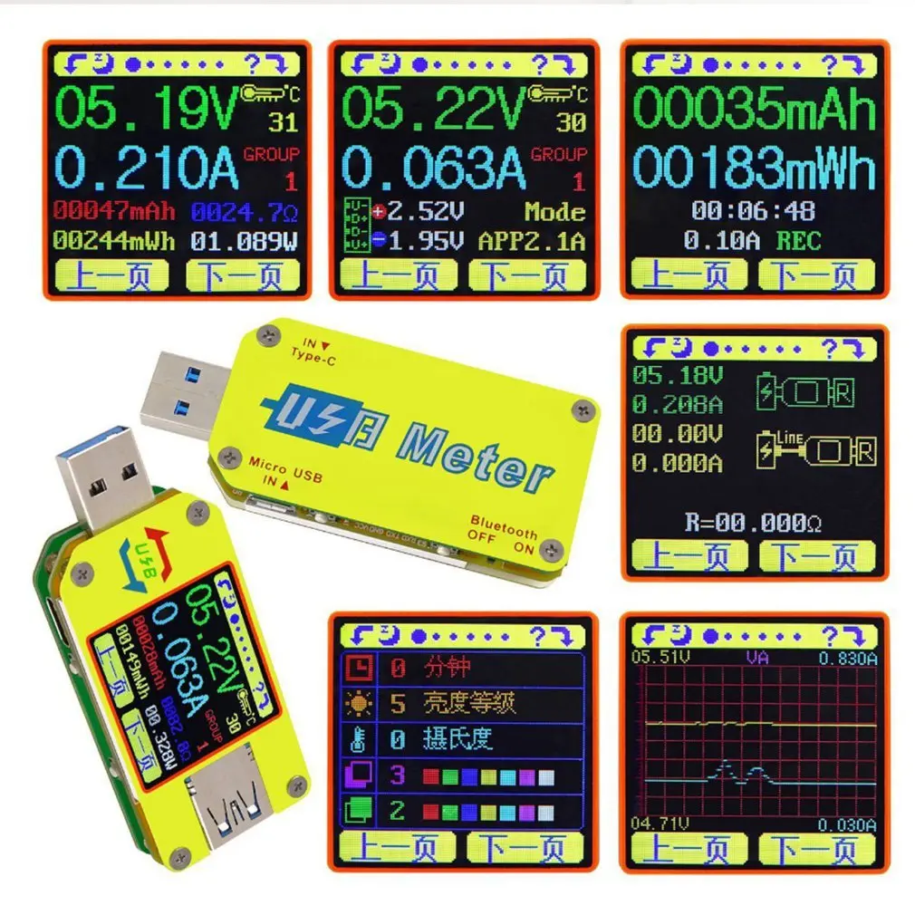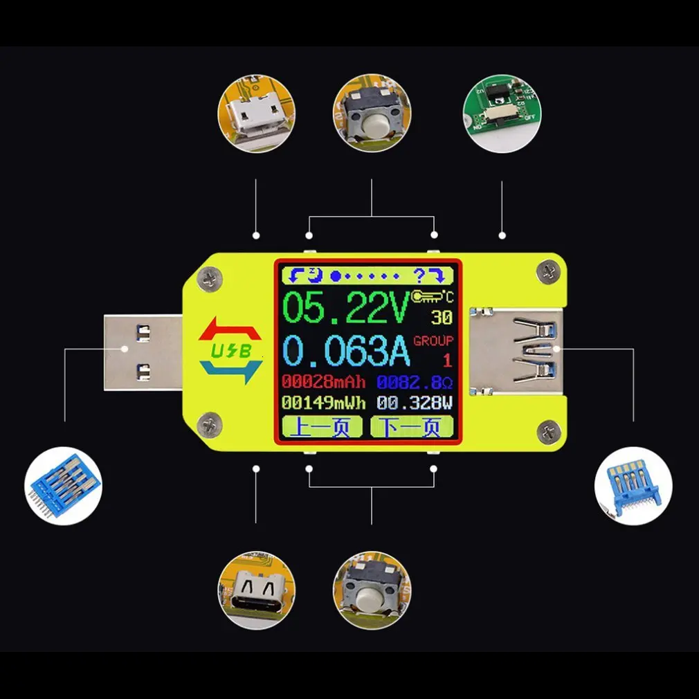 Интерфейс Type-C, цветной экран с вращением на 4 направления, регулировка яркости экрана на 6 уровней, интерфейс отображения 6 измерений