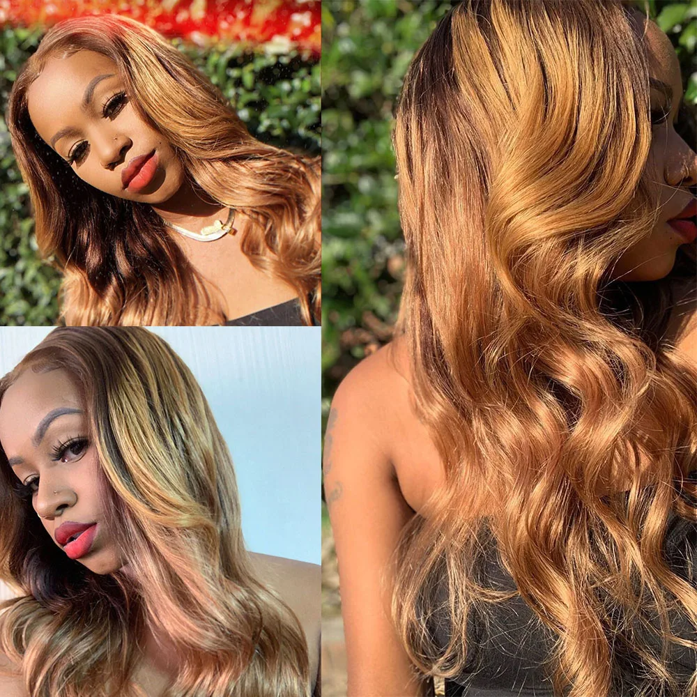 Капелли пучки человеческих волос Ombre с закрытием 4*4 4/30 не волосы Remy с эффектом омбре наращивание бразильского тела волна 3 пучка с закрытием