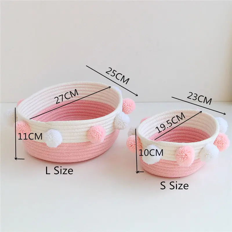 Милая тканая корзина из хлопка в скандинавском стиле с пушистыми шариками, используется для разного, игрушек, косметики, домашнего декора.