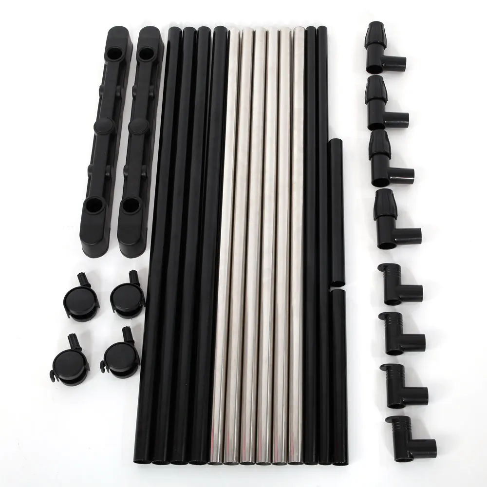 ________________________________________________ Тип 5 Технические характеристики: 1. Материал: нержавеющая сталь (труба) и ПП пластик (пьедестал и соединитель) 2. Цвет: черный и серебристый 3. Диаметр стальной трубы: 0,87 "/2,2 см, 1,00"/2,54 см, 0,75 "/1,91 см 4. Вес: 65,6 унций/1860 г 5. Диапазон вертикального растяжения: (35,43-62,99) " / (90- 160) см 6. Размеры: (31,49x16,93) " / (80x43) см (Д x Ш) 7. Модель: YJ-03 Посылка включает в себя: 4x25*68 см трубы 4 х 22*68 см трубы 2x19*68 см трубы 2 х 22*25 см трубы 2 x базы 4 х колеса 4x3 нижних частот суставов 4 х концевые пробки трубопровода