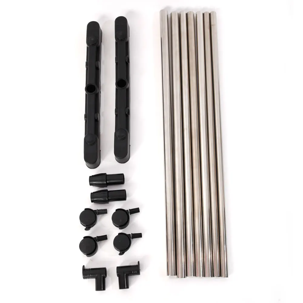 ________________________________________________ Тип 2 Технические характеристики: 1. Материал: нержавеющая сталь (труба) и ПП пластик (пьедестал и соединитель) 2. Цвет: черный и серебристый 3. Диаметр стальной трубы: 0,83 "/2,1 см, 1,00"/2,54 см, 0,79 " / 2 см 4. Диапазон поперечного растяжения: (33,86-62,99) " / (86- 160) см 5. Диапазон вертикального растяжения: (35,43-62,99) " / (90- 160) см 6. Размеры: (31,49x16,93) " / (80x43) см (Д x Ш) 7. Вес: 46,91 унций/1330 г 8. Модель: YJ-02 Посылка включает в себя: 2x25*68 см трубы 2 х 22*68 см трубы 2x19*68 см трубы 1x25*68 см трубы 2 х 22*34 см трубки 2 x базы 4 х колеса 2 x прямоугольный разъем 2x3 нижних частот суставов 2 x концевые пробки трубопровода