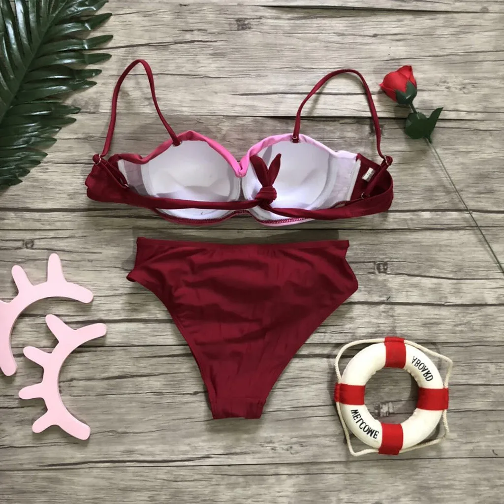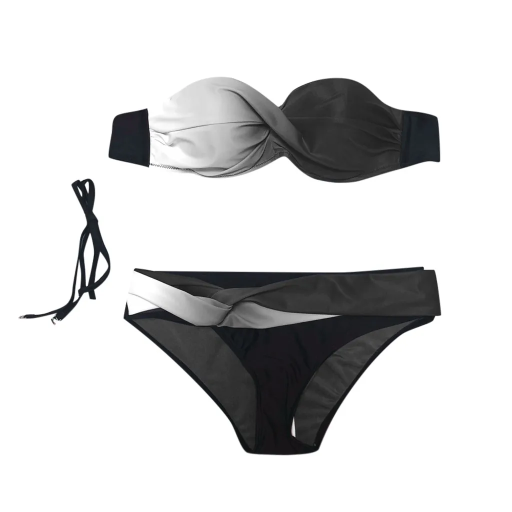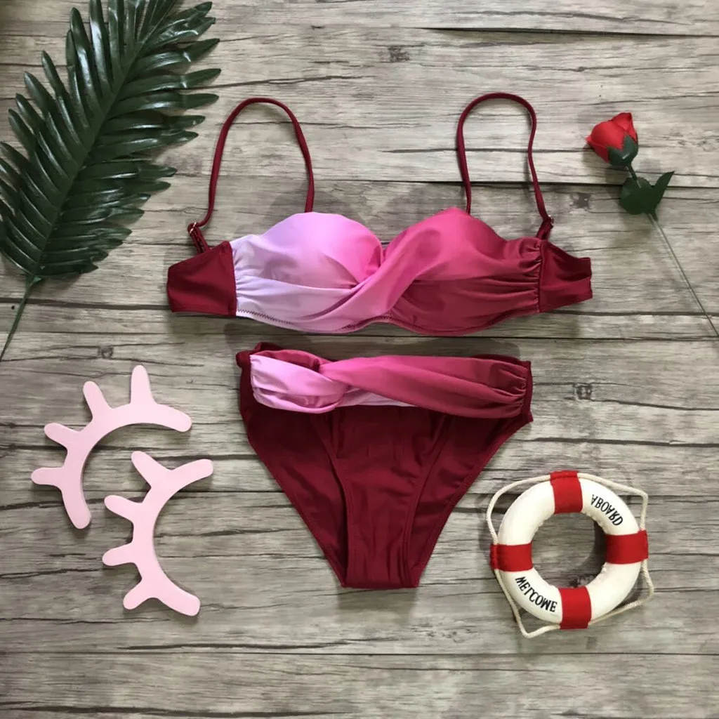 Женский винтажный купальник, женская одежда для плавания купальник раздельная пляжная одежда, женский купальный костюм с градиентным принтом, 2 шт.