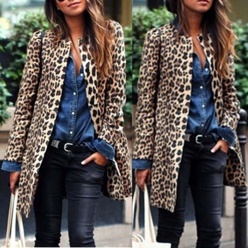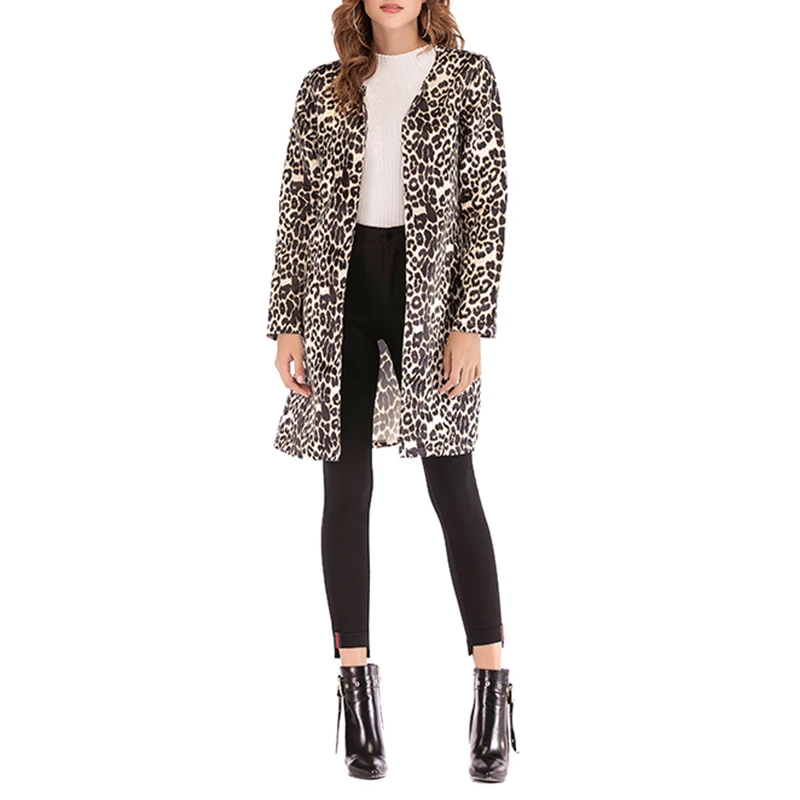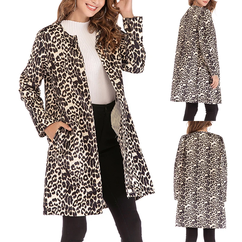 * Описание товара:Новый Модный женский леопардовый принт, сексуальный зимний теплый ветровка кардиган, вязаный жакет на пуговицах