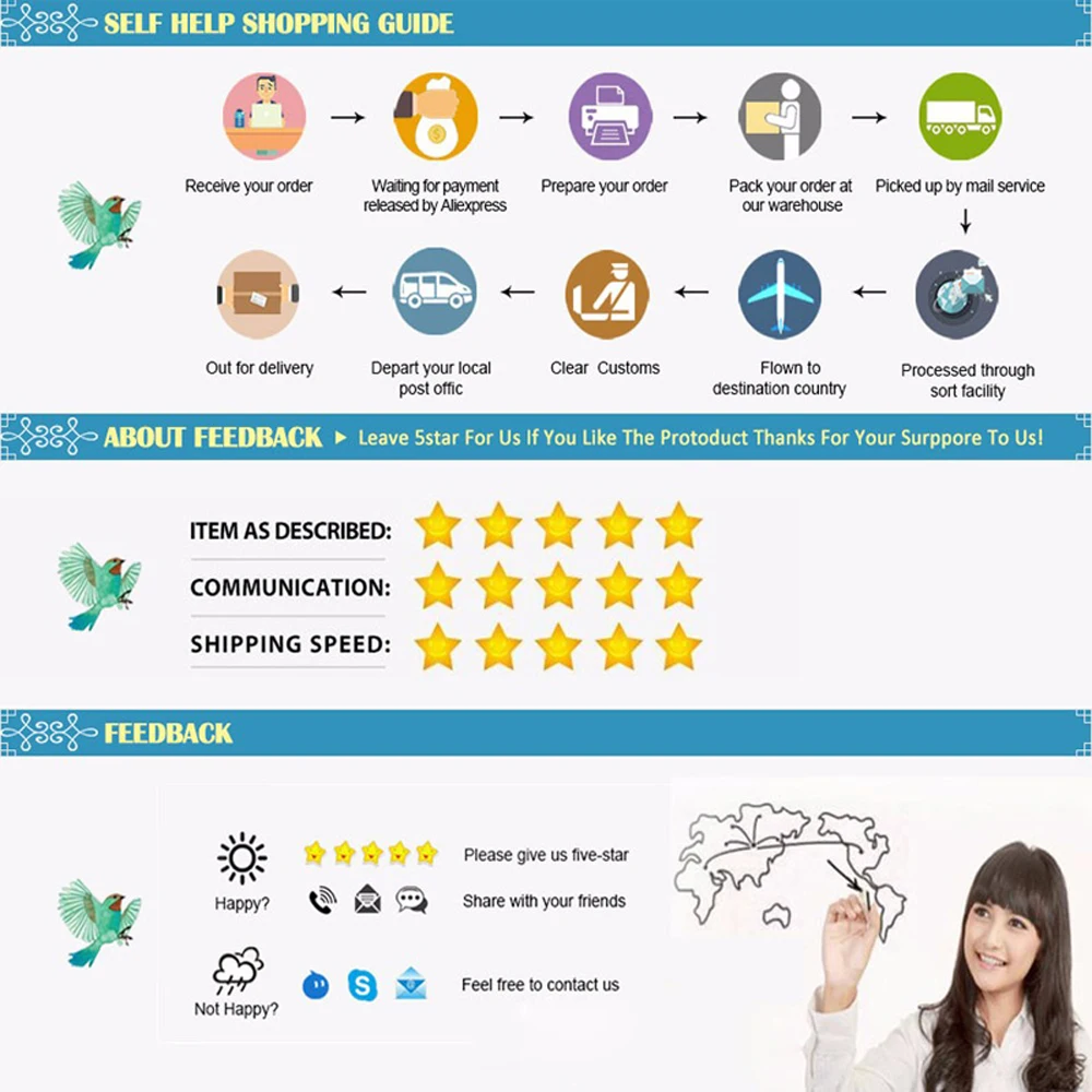 (1) Пожалуйста, оставьте нам положительный отзывы (5 звезд), если вы удовлетворены нашими товарами. И вы можете поделиться с друзьями на VK Facebook, Twitter... спасибо (2) Пожалуйста, свяжитесь с нами, прежде чем оставить отрицательный отзывы или открыть спор на AliExpress. (3) Пожалуйста, дайте нам возможность решить любую проблему. (Общение-лучший способ решить любую проблему)