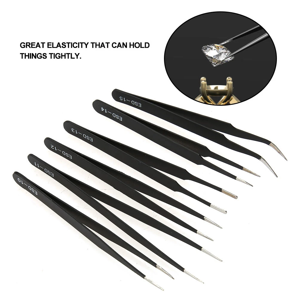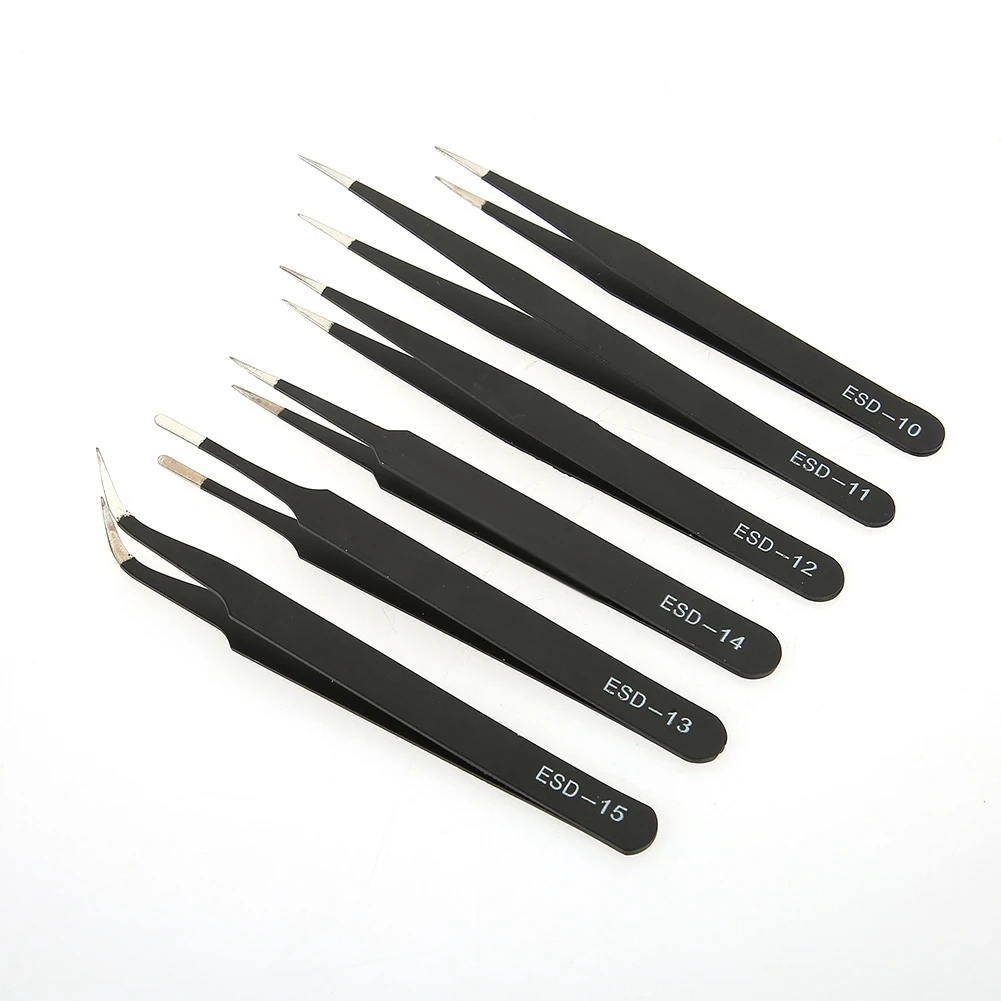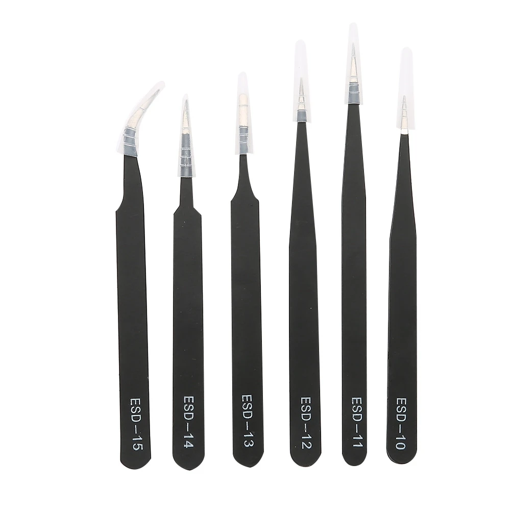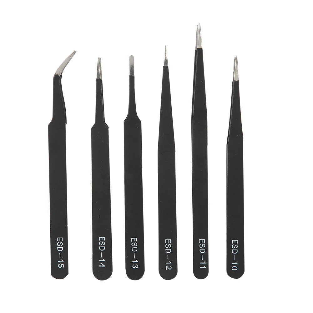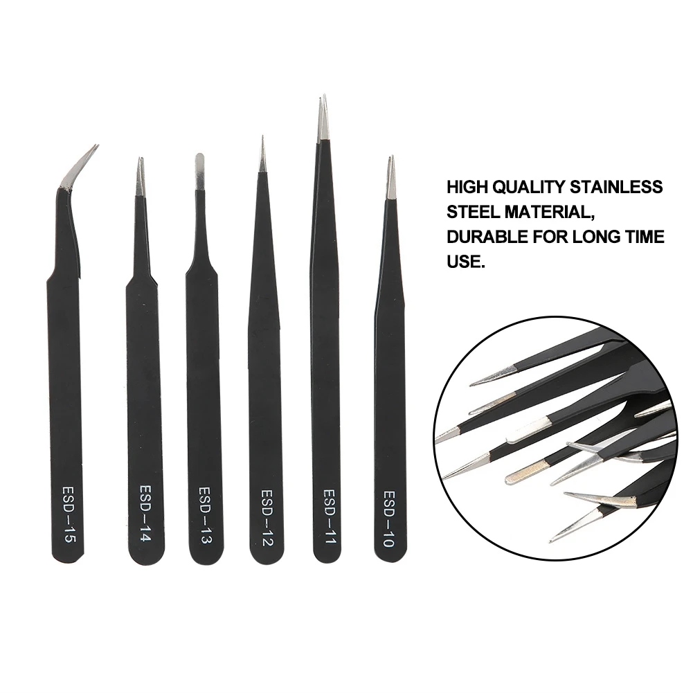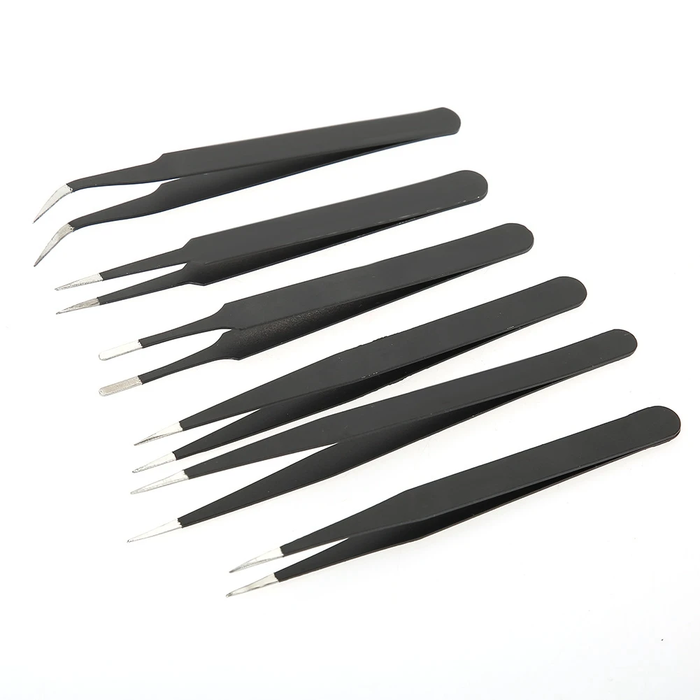 6 шт. набор инструментов шпильки драгоценный камень швейная эпиляция глаз бровей Trimme изогнутые прямые Нержавеющая сталь Черный Пинцет инструмент для обслуживания