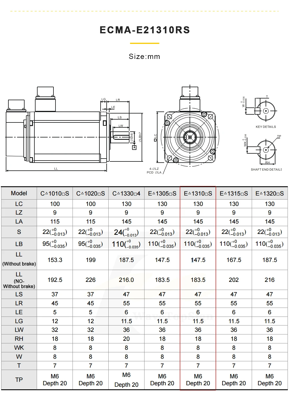 Наборы двигателя (тормоз):ASD-B2-1021-B + ECMA-E21310RS (тормоз)