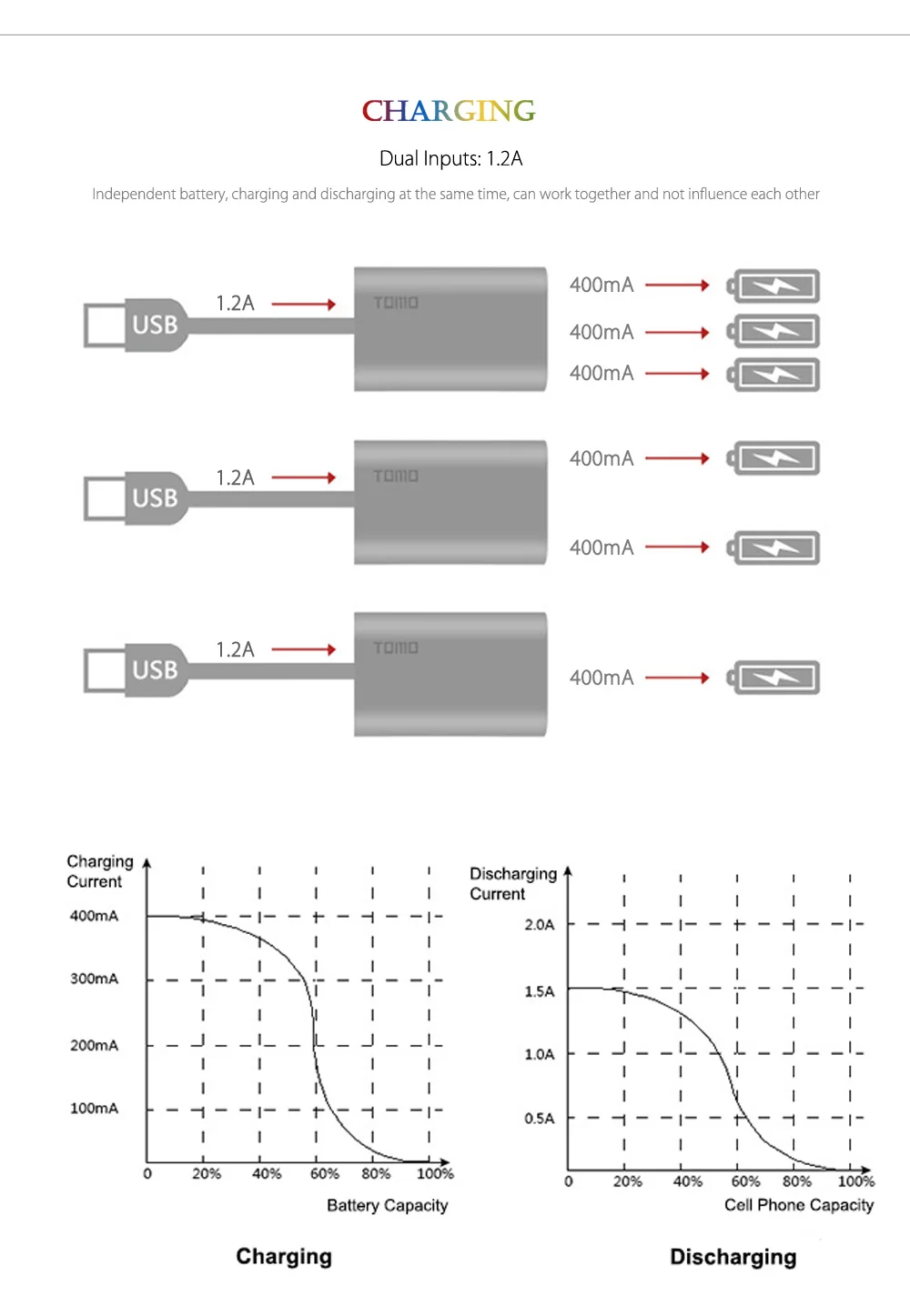 Независимая батарея, зарядка и разрядка одновременно, может работать вместе и не влияет друг на друга