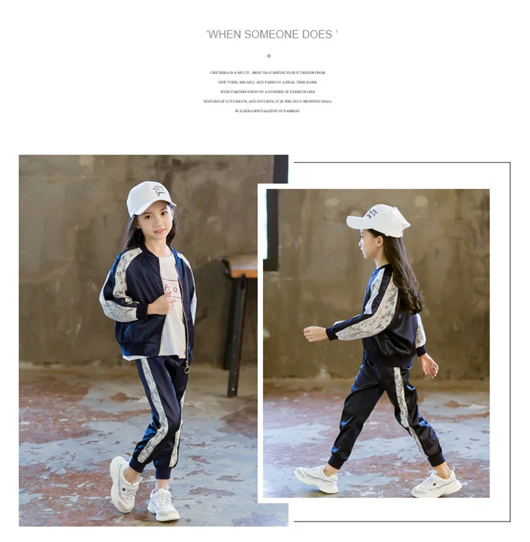 Комплекты одежды для детей, осенне-зимний спортивный костюм для девочек, кружевная куртка с длинными рукавами + штаны, комплект из 2 предметов, одежда для девочек 4, 6, 8, 10, 12, 13 лет