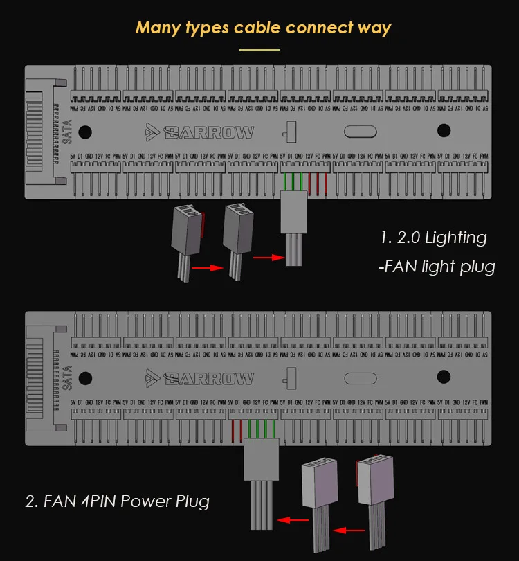 Убедитесь, что он совместим, 5 в 3Pin rgb заголовок или 12 В 4pin rgb заголовок, соединительный элемент и материнская плата сохраняют свою совместимость.