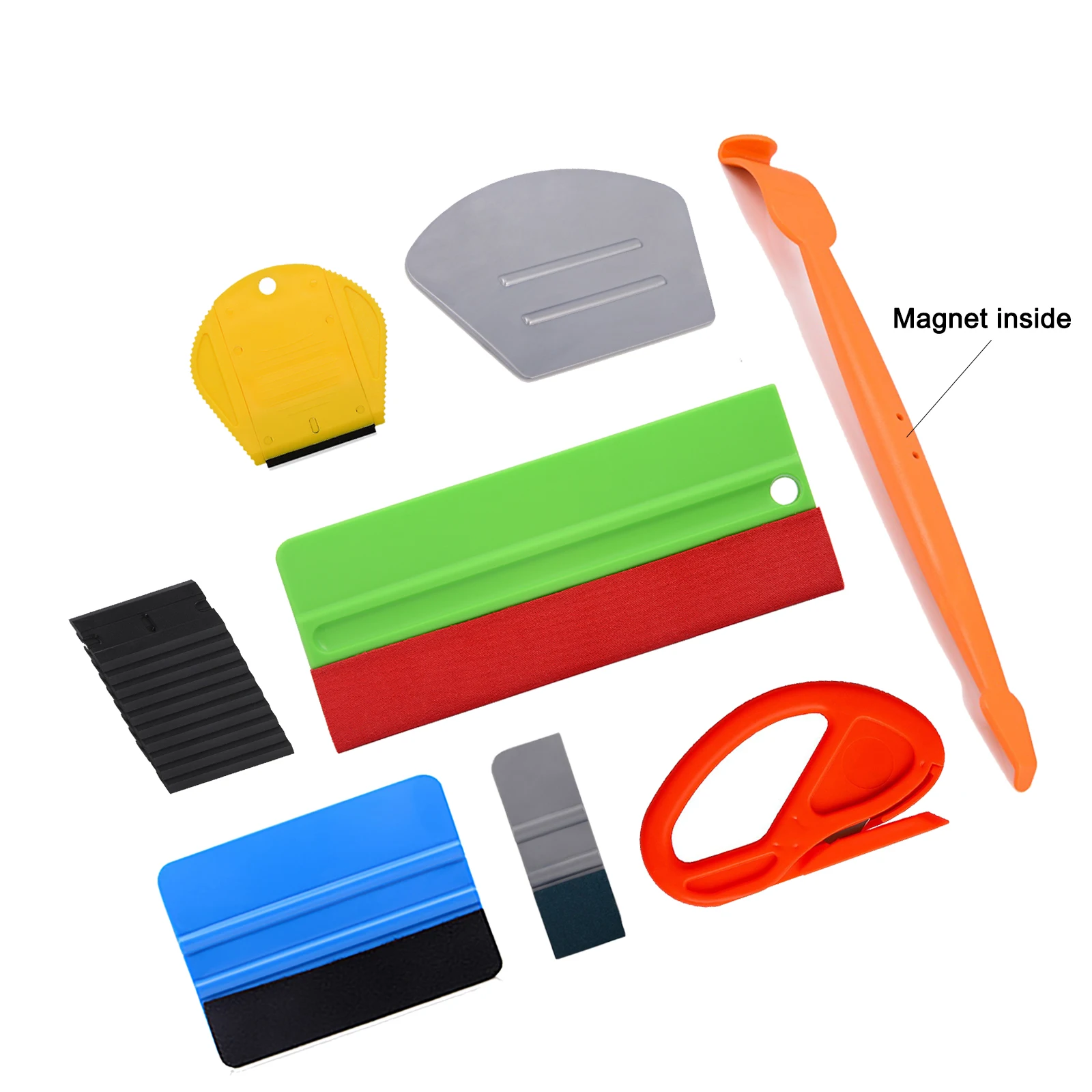 8 в 1 Набор инструментов для упаковки автомобиля: -Автомобильный оконный виниловый пленочный набор для установки автомобиля тонировочные инструменты -Снимите пузырьки прямо под пленкой, -Комплект скребок для окон Портативный и удобный в использовании, мягкий скребок, не царапается при работе. Применение: 1. Старая виниловая пленка и удаление клея, чистящая щетка для машины, инструменты для укладки 2. Наклеивание автомобильной пленки, нанесение специальной пленки на здание, установка виниловой пленки, установка тонировочной пленки для окон, установка стеновой бумаги, инструменты для Обертывания автомобилей 3. Использование бытового стекла стеклоочистителя, дома автомобиля, строительных инструментов, промышленных инструментов. 4. Автомобиль/окно/Мобильный телефон Защита экрана Особенности: 1. Прочный ракель из высококачественной резины/пластика 2. Снимайте пузырьки прямо под пленкой, предотвращая появление стеклянного кузова автомобиля и пленки 3. Не царапается, не оставляет следов или следов, просто гладкие движения, которые легко скользят по виниловым пленкам и окрашенным поверхностям 4. Легкий вес позволяет легко использовать и хранить в небольших помещениях 5. Удобно использовать Посылка включает в себя: 1 х синий фетр Ракель (10*7,3 см) (1 шт.); Из замши; Цвет серый; Фетр Ракель (2,5*7,3 см) 1x серый сектор скребок 1 х длинный Магнитный Ракель 1 х Длинные скребок 1 х Защитный резак 1 х бритва скребок 10 x Пластиковые лопасти