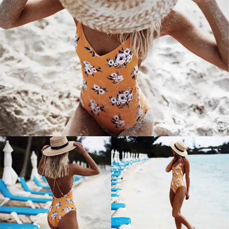 2018 сексуальный бразильский монокини с принтом, бандаж, купальный костюм с пуш-ап, Женский винтажный Цельный купальник Biquni, трикини, пляжная одежда