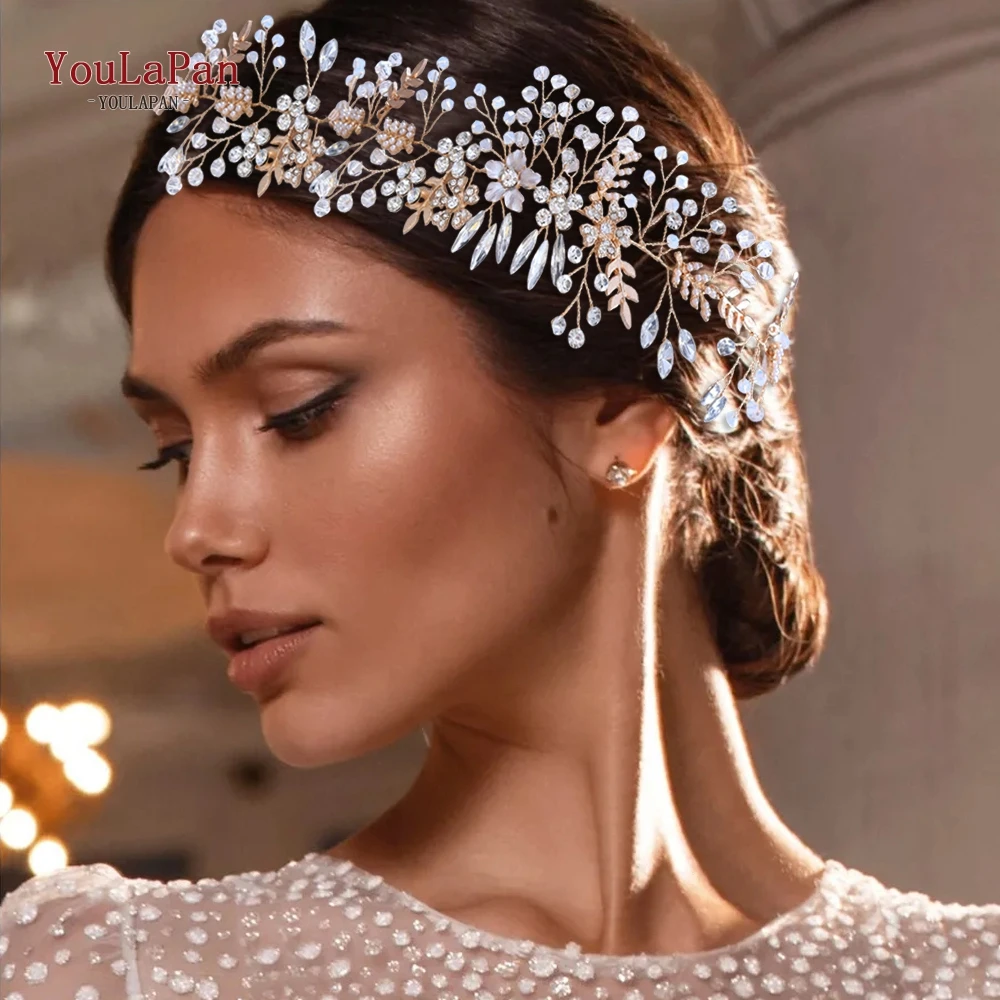 TOPQUEEN HP235 Свадебная повязка на голову тиара и корона со стразами свадебные головные уборы украшения для волос Свадебные Цветочные лозы аксессуары для волос