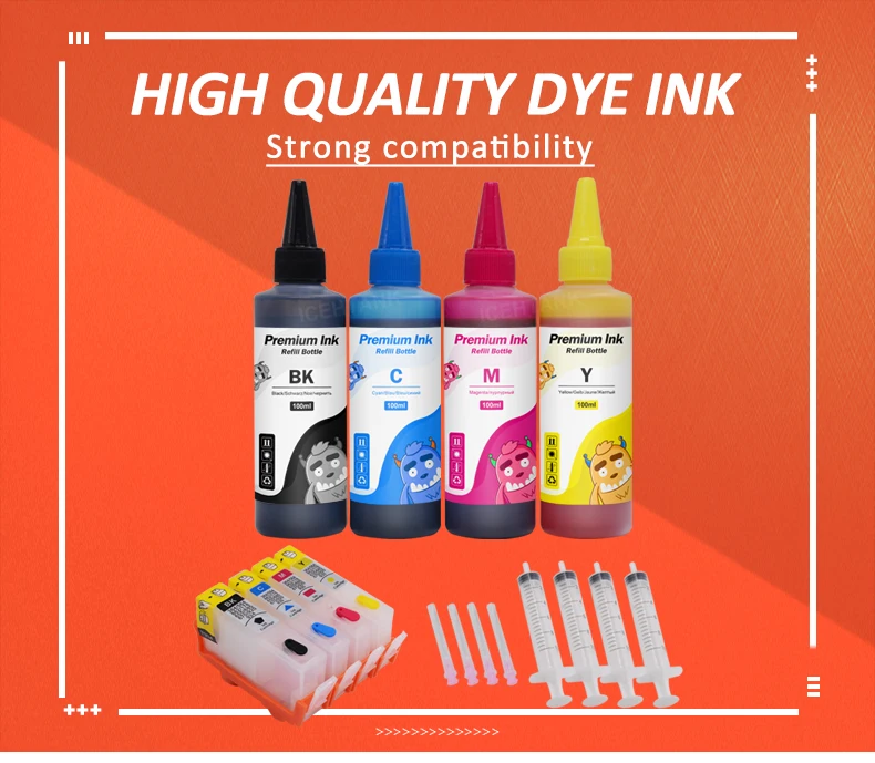 Упаковка: 4 цвета 920XL чернильный картридж + 4 бутылки заправка чернил + 4 шприца и иглы
