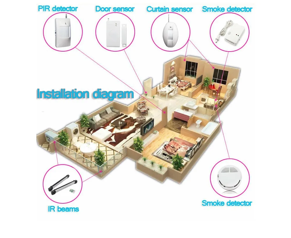 Высокое качествоFUERSG2Беспроводной 99 + проводной 4 зоныДвойной сети GSMSms и PSTN стационарный телефонГлавная безопасностиСигнализация