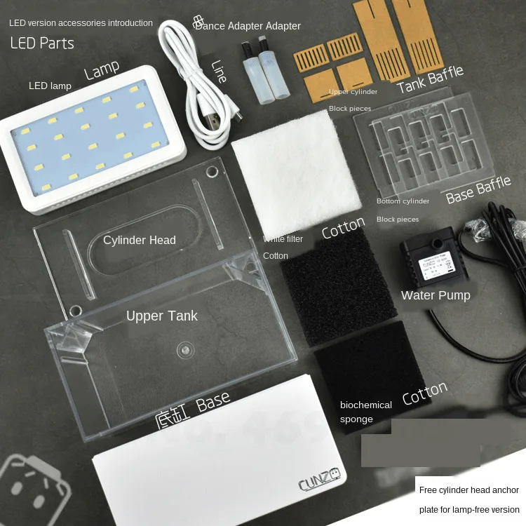 M125Mini двухслойный пластиковый аквариум с фильтрацией воды, светодиодный светильник и тихий пузырь, портативный экологический аквариум