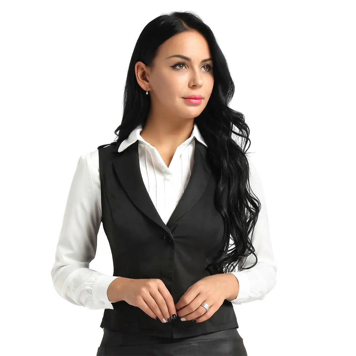 Женский приталенный костюм без рукавов, жилет, однобортный.