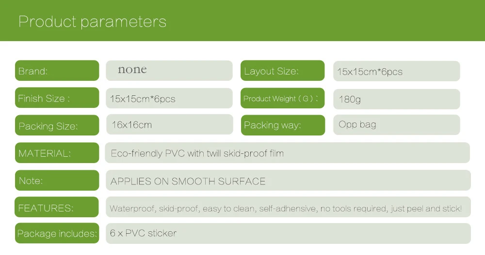 Размер: 15x15 см x 6 шт.;Пожалуйста, измерьте размер нужного вам размера, чтобы убедиться, что товар, который вы заказали, подойдет для вашей потребности