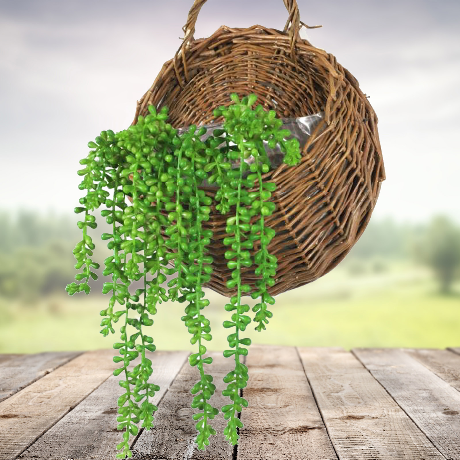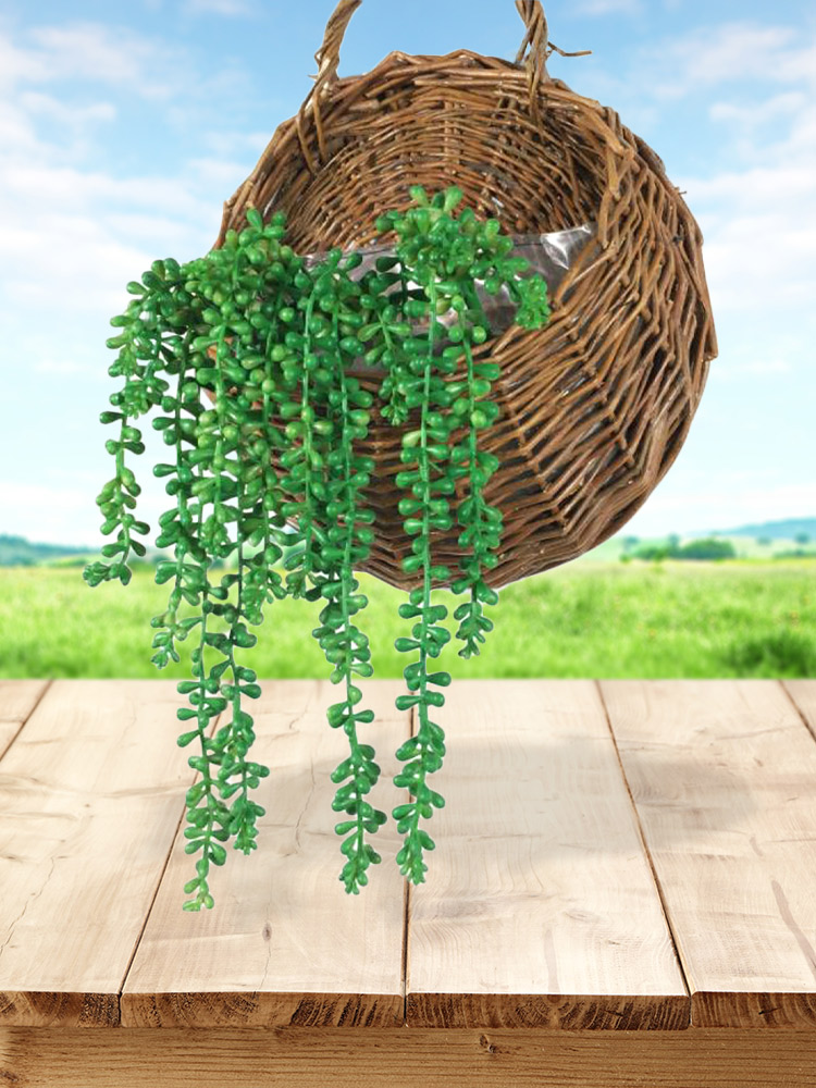 Благодаря растягивающейся искусственной плетеной лозе, этот дизайн зелени идеально подходит для добавления стильного свежего воздуха в ваш декор, не занимаясь настольным пространством.
