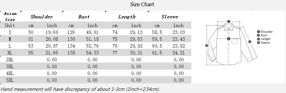 Пожалуйста, внимательно прочитайте перед размещением заказа. Азиатский размер отличается от американского размера. Измерение вручную имеет погрешность около 1-3 см (1 дюйм = 2,54 см).