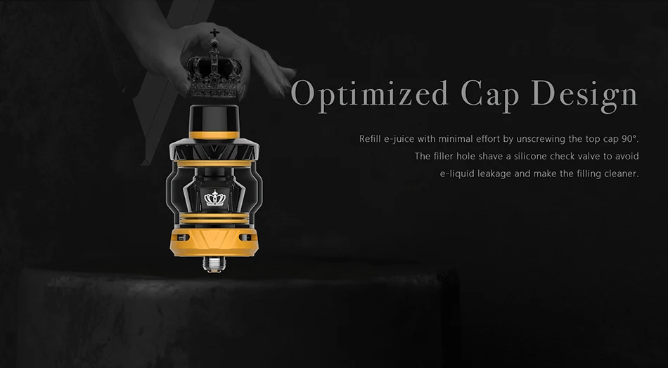 Uwell Crown 5 TankЯвляется модернизированным атомайзером суб-ом vaping, продолжает дизайн своего предыдущий резервуара Crown IV и добавляет некоторые новые технические характеристики. Бак Uwell Crown 5 диаметром 29 мм, изготовлен из нержавеющей стали и мелко отполирован, чтобы придать ему яркий блеск и гладкость. В этот бак входит прочная стеклянная трубка Pyrex с емкостью e-liquid 5 мл. Бак Uwell Crown 5 sub ohm используется вместе с сетчатыми катушками UN2. Существует три типа: UN2 0,23 Ом Одиночная сеточная катушка; UN2-2 0,3 Ом двойная сеточная катушка; UN2-3 0,2 Ом Тройная сеточная катушка. Все версии используют сетку вместо обычной катушки. Посылка включает в себя спираль UN2 0,23 Ом и UN2-2 катушку 0,3 Ом. С помощью быстрой подключаемой системы установка катушки может быть завершена немедленно. Вдоль основания бака Crown 5 Sub Ohm находится регулируемое кольцо воздушного потока, которое может быть полностью закрыто для более ограниченного вейпа.