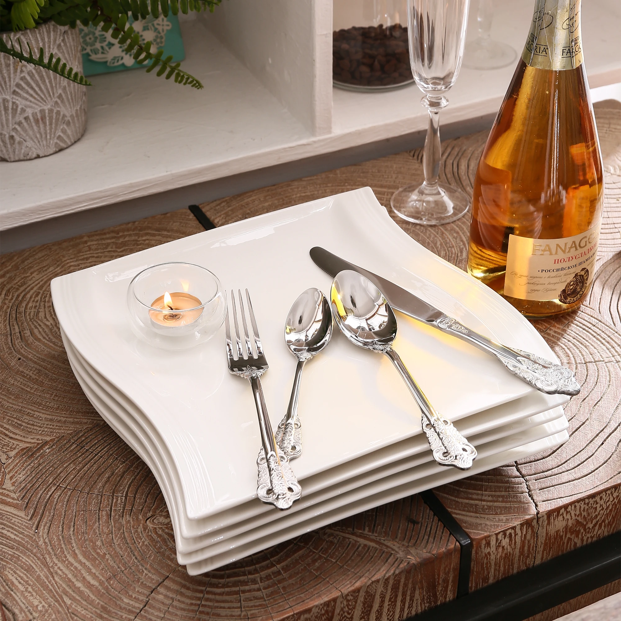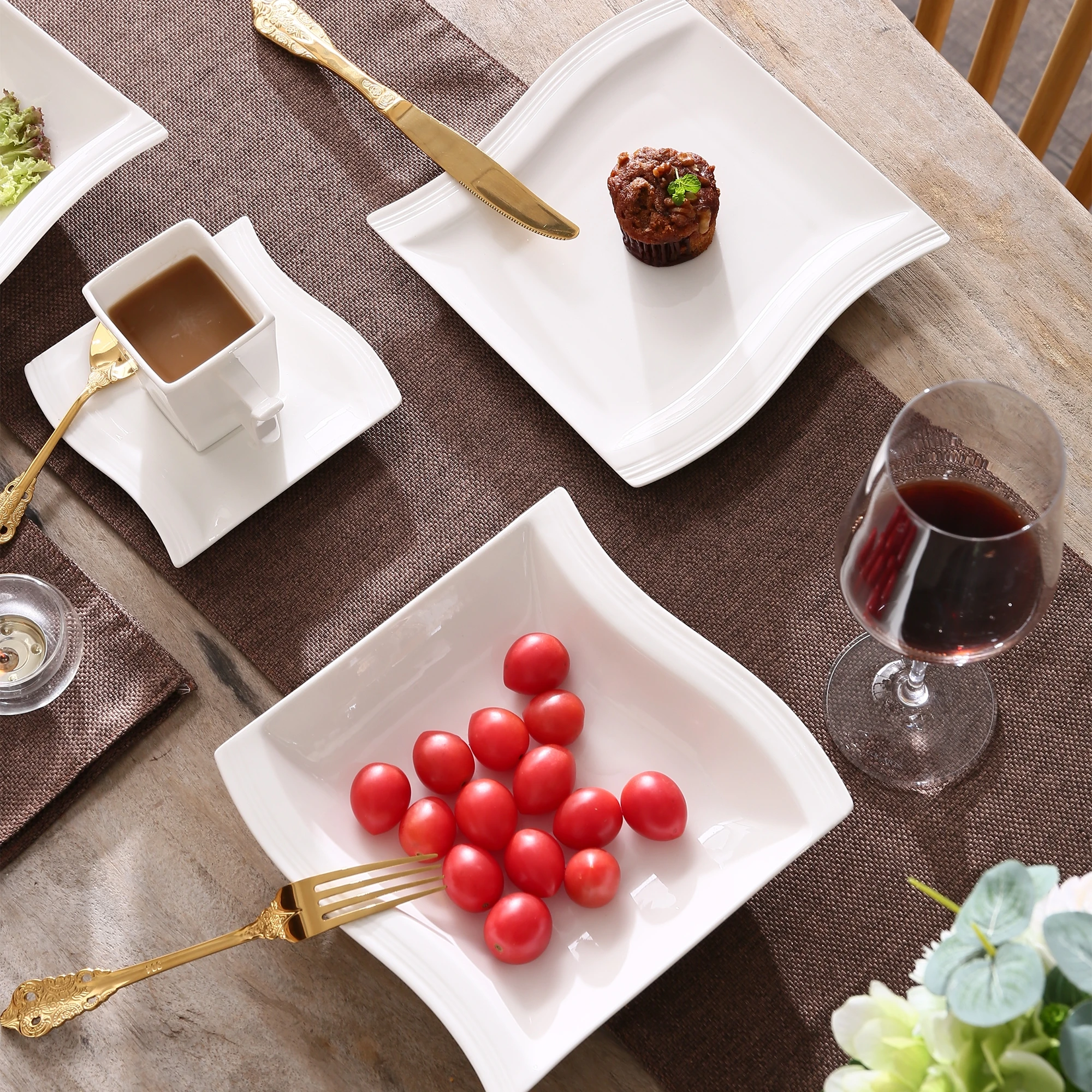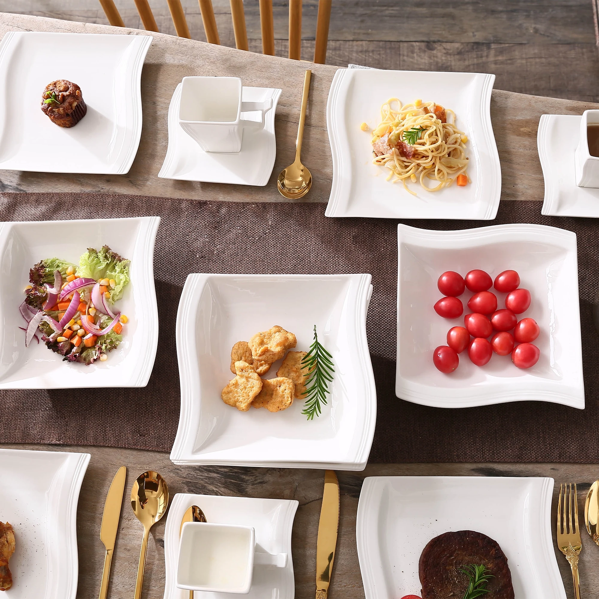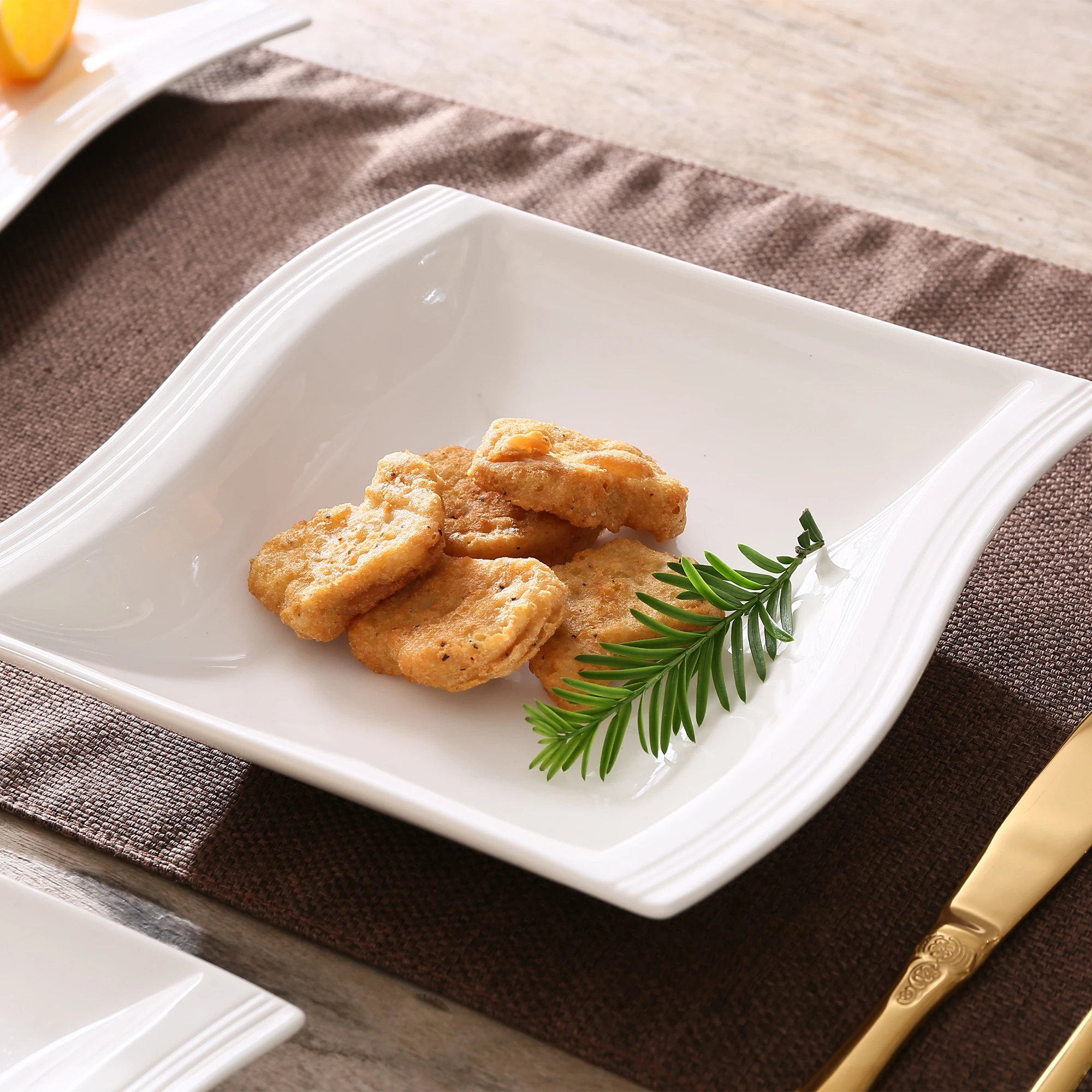 Элегантные мягкие белые пластины квадратной формы идеально подходят для любого случая. От повседневных завтраков до праздничных обедов этот универсальный набор посуды дополнит любой стиль кухни и столовой.