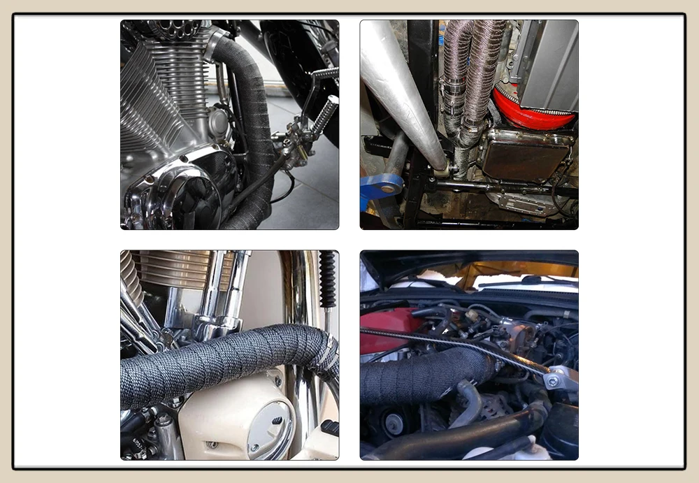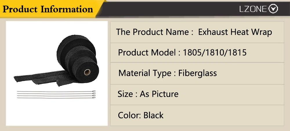 100% quality assurance tested, more responsive, less expensive, easier to install.Withstand direct heat up to 932°F(500°C). And fade when it gets above 572°F(300°C).Pre-wetting roll not necessary for wrapping.Optimizes horsepower, performance and fuel economy.Reduces underhood temperatures and maintains high exhaust gas velocity.Material & Color: