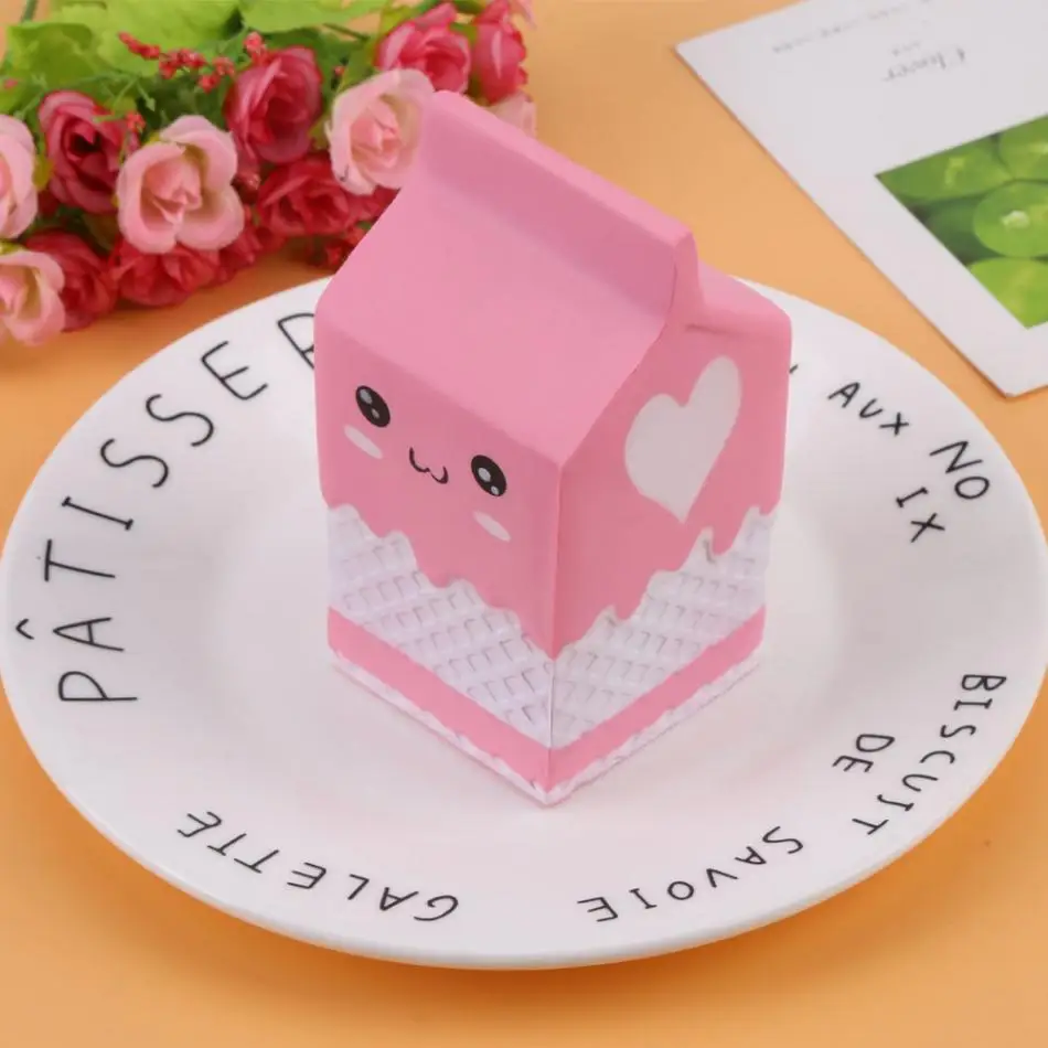 Сжимаемая игрушка 1 шт., милая мягкая розовая коробка для йогурта, форма, Сжимаемый шарик, медленно поднимающийся ребенок, для взрослых, Сжимаемый ребенок, кляп, Декор, снимает игрушки для снятия стресса