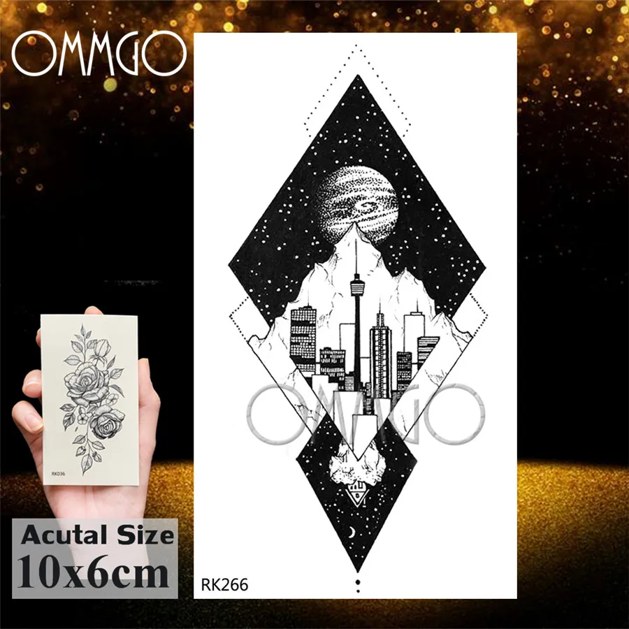 Временные татуировки OMMGO Galaxy, геометрические, пиковые, Звёздные, круглые, поддельные тату, луна, черные, на заказ, тату для женщин и мужчин, боди-арт