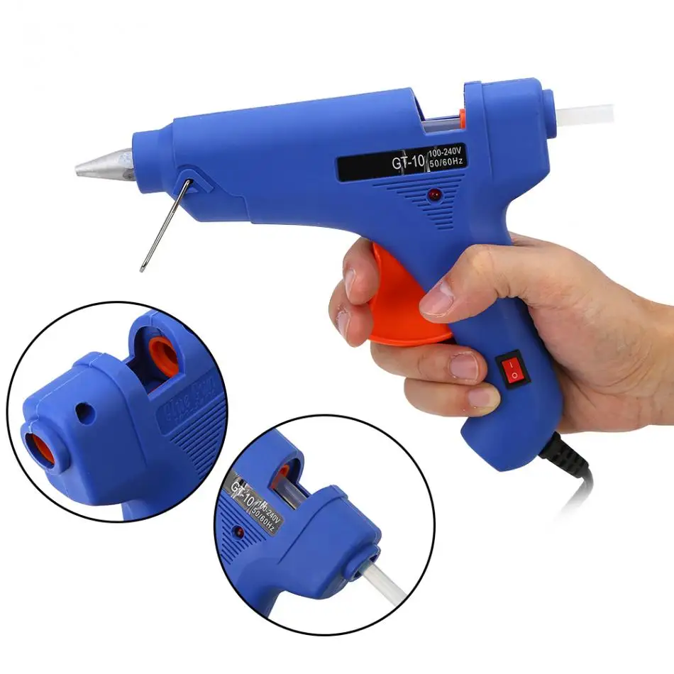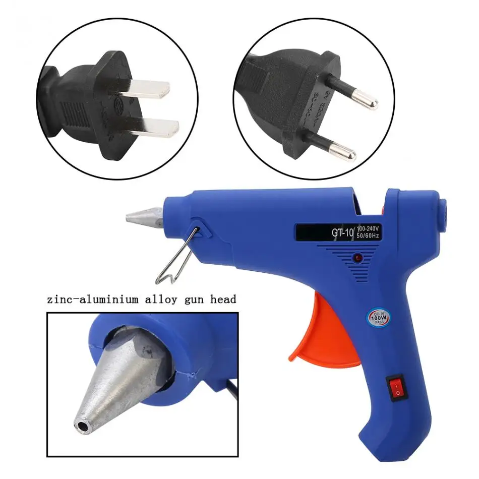 Головка из цинкового и алюминиевого сплава, прочная и долговечная для длительного использования. Он принимает керамический термистор PTC в качестве нагревательного элемента, быстрый нагрев и точную постоянную температуру. Без колебаний напряжения со встроенными предохранителями безопасности, безопаснее. Легко использовать с дизайном переключателя и плавким клеем можно управлять, очень удобно. Идеально подходит для дома, офиса, поделок своими руками с бумагой, печатной платой, бумажной коробкой, аксессуарами для волос и многого другого.
