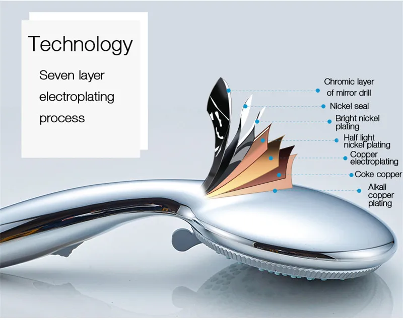 Душевая лейка изготовлена из АБС-пластика, прочная и долговечная, ее поверхность обработана абразивным, полировочным, никелированным и хромовым покрытием, гарантируем, что насадка для душа будет выглядеть ярко и не будет покрыта черным оксидным покрытием.
