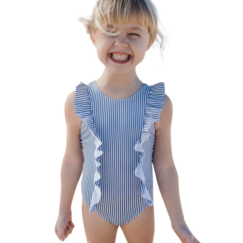 Высокое качество и абсолютно новый 100% детский купальный костюм для маленьких девочек, купальный костюм без рукавов в полоску, бикини, купальный костюм, купальный костюм, пляжная одежда