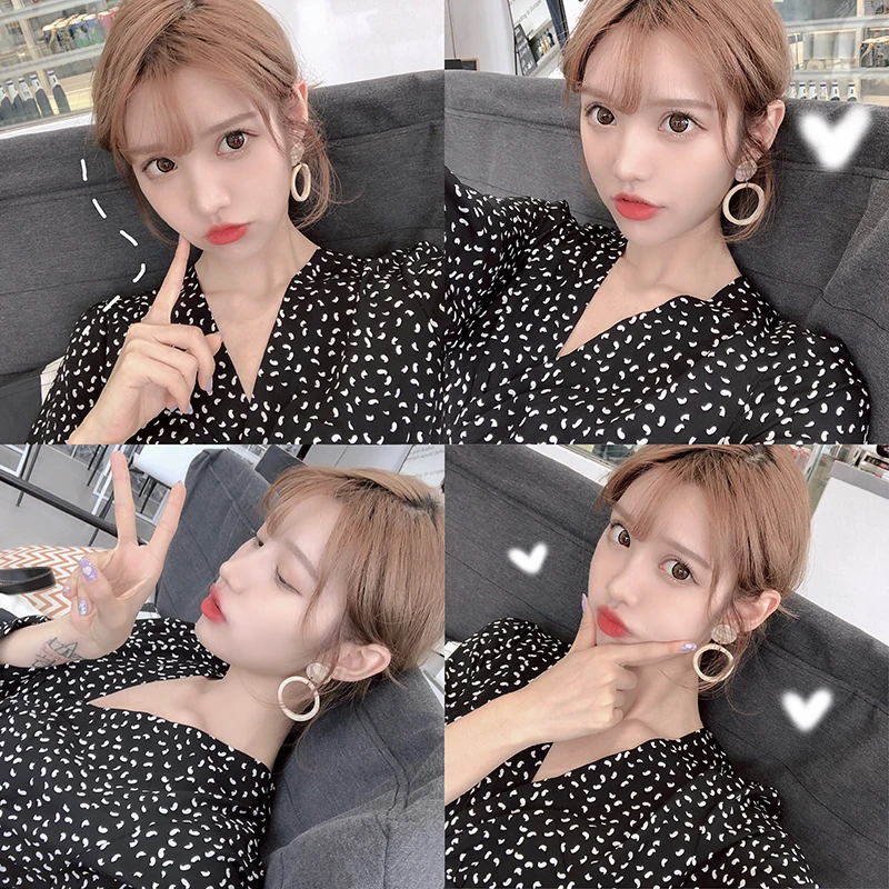 Женское платье в стиле ретро, лидер продаж, приталенное ТРАПЕЦИЕВИДНОЕ элегантное винтажное платье-рубашка в горошек с v-образным вырезом и высокой талией в Корейском стиле