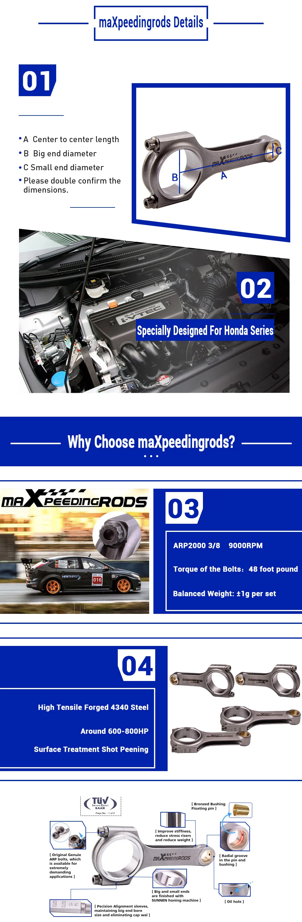 Болты:Включая подлинные 3/8 "ARP 2000 болты (Примечание: дополнительные расходы на обновление до ARP L19 болты)
