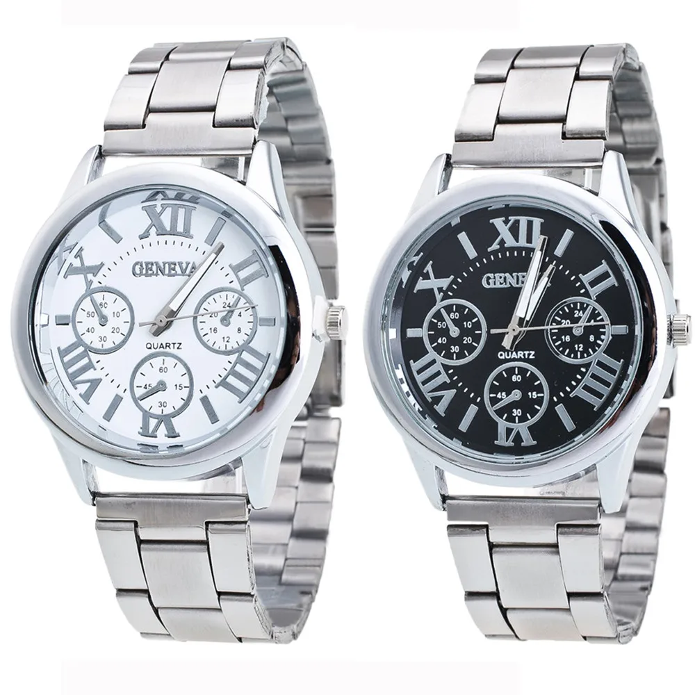 Женские Мужские кварцевые наручные часы с римскими цифрами из нержавеющей стали