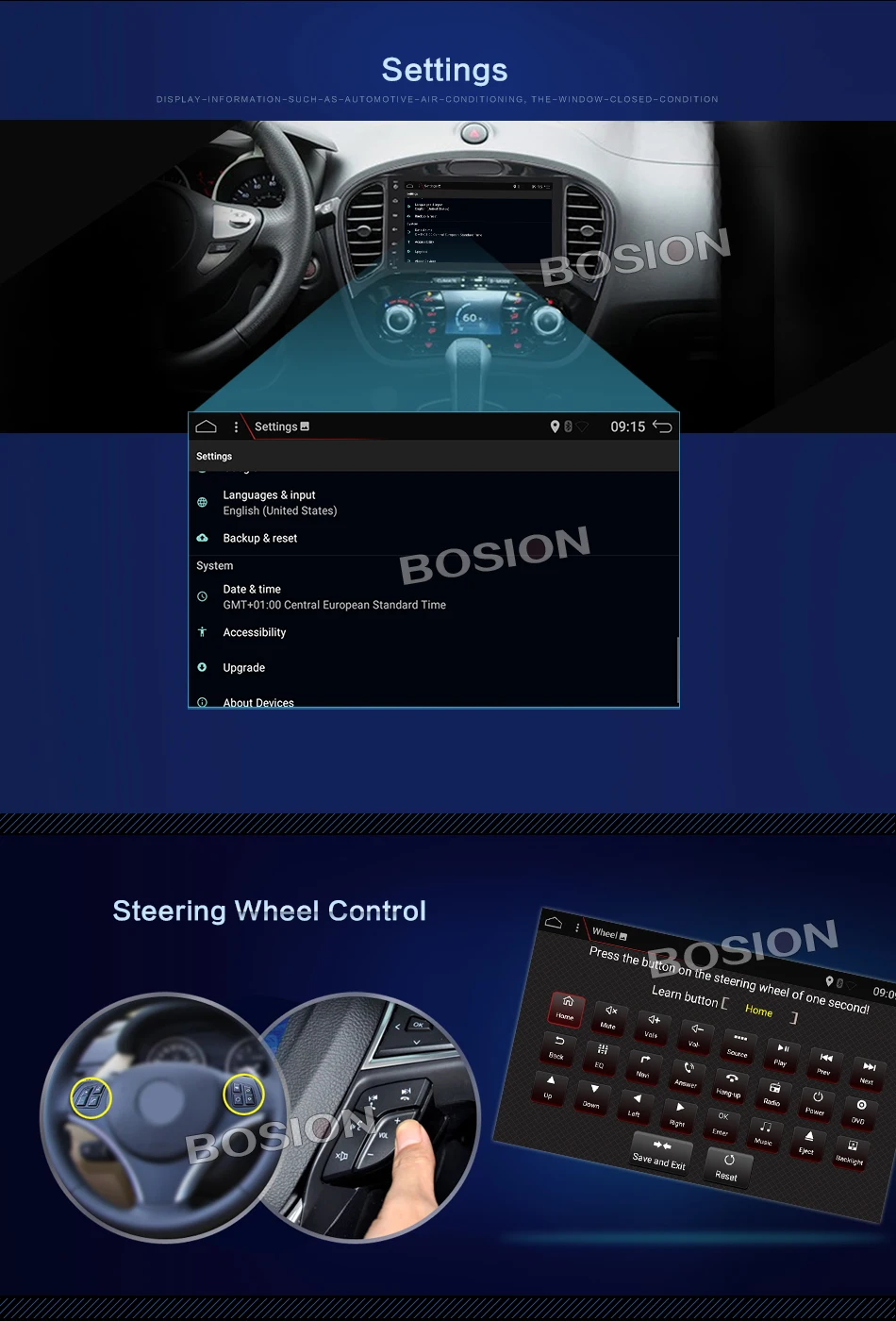 Сенсорный экран + радио + FM/AM + RDS + gps-навигация + карта + Wifi + Bluetooth + управление рулевым колесом + сплит-экран + USB + SD + AUX вход/выход + зеркальная ссылка + задний камера + сабвуфер + Play Sore + EQ + набор обоев + логотип автомобиля + 3G/4G + TPMS + DAB + OBD 2 + DVR + TV