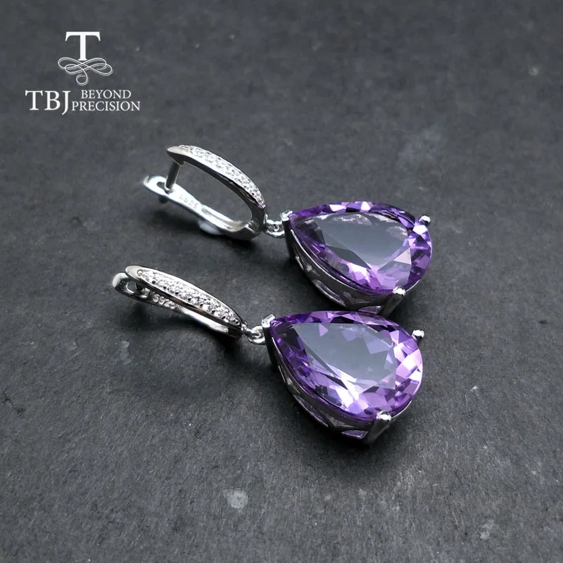 Товар: серьги из серебра 925 пробы с натуральными драгоценными камнями Материал: серебро 925 пробы, белый цвет Серебристый Вес: около 6,95 г Центральный камень: Натуральный Бразильский Аметист, груша 12*16 мм Вес драгоценного камня: около 13,6 карат Обработка драгоценных камней: с подогревом Место происхождения: Бразилия Боковой камень: кубический цирконий