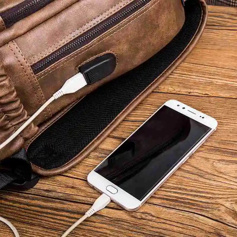 Men Backpack External USB Charge Backpack Fashion PU Leather Travel Bag Casual School Bag For Teenagers Male Laptop Bag