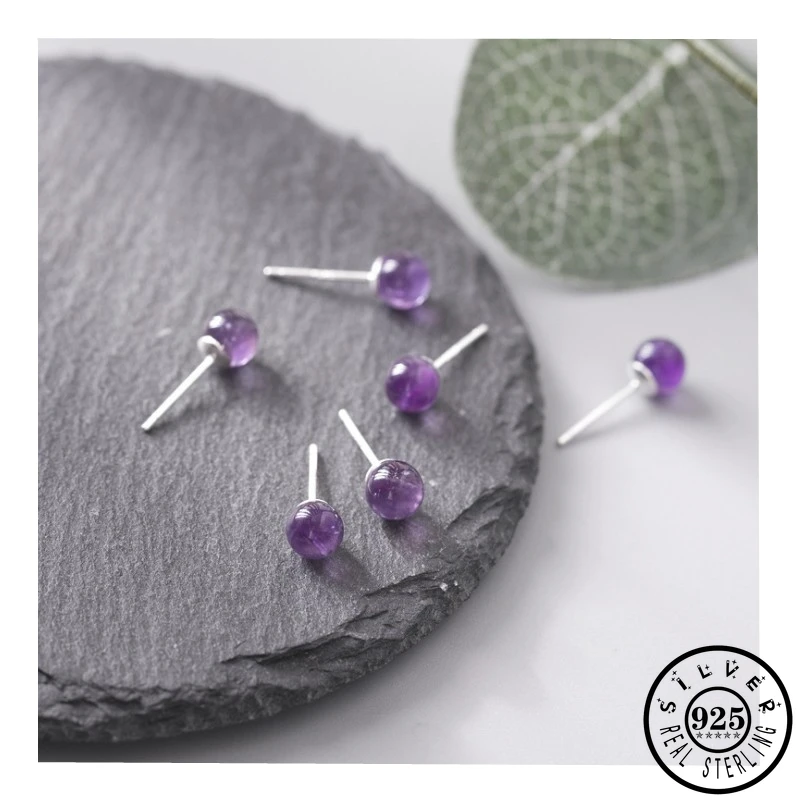 Пункт TТип:100% Серебро 925 пробы, круглые фиолетовые серьги-гвоздики с кристаллами для женщин, корейские ювелирные украшения, лучший друг, подарки