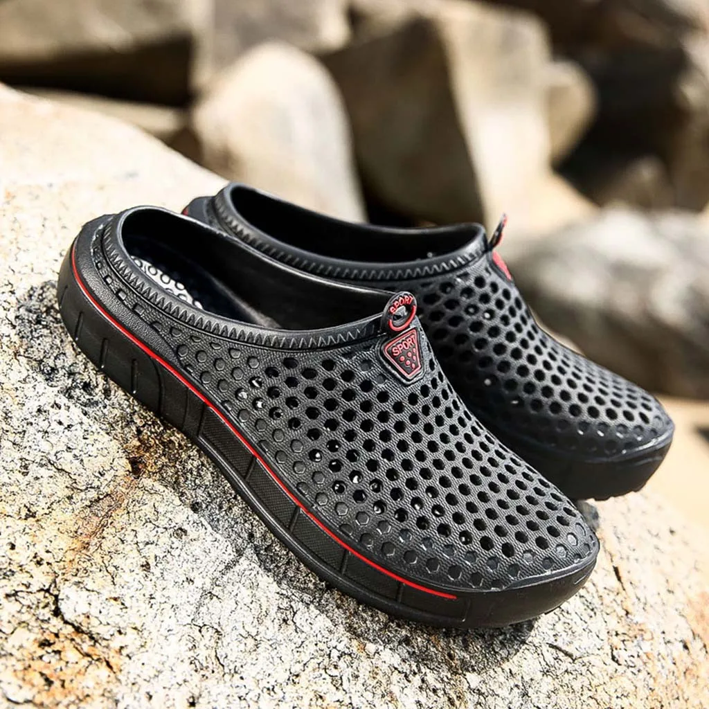 Мужские и женские пляжные сандалии; Повседневные Дышащие тапочки с перфорацией; Обувь на плоской подошве