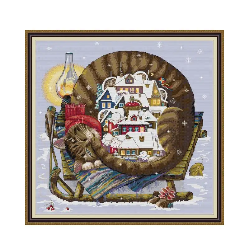 Удобные зимние наборы вышивки крестиком 11CT 14CT Печать на холсте DMC Наборы для вышивания аксессуаров инструменты